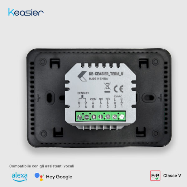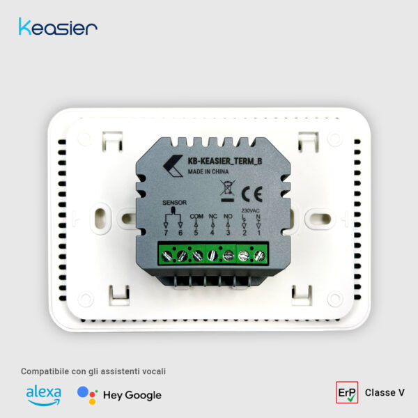 Il termostato Keasier è alimentato in 230V tramite cablaggi.